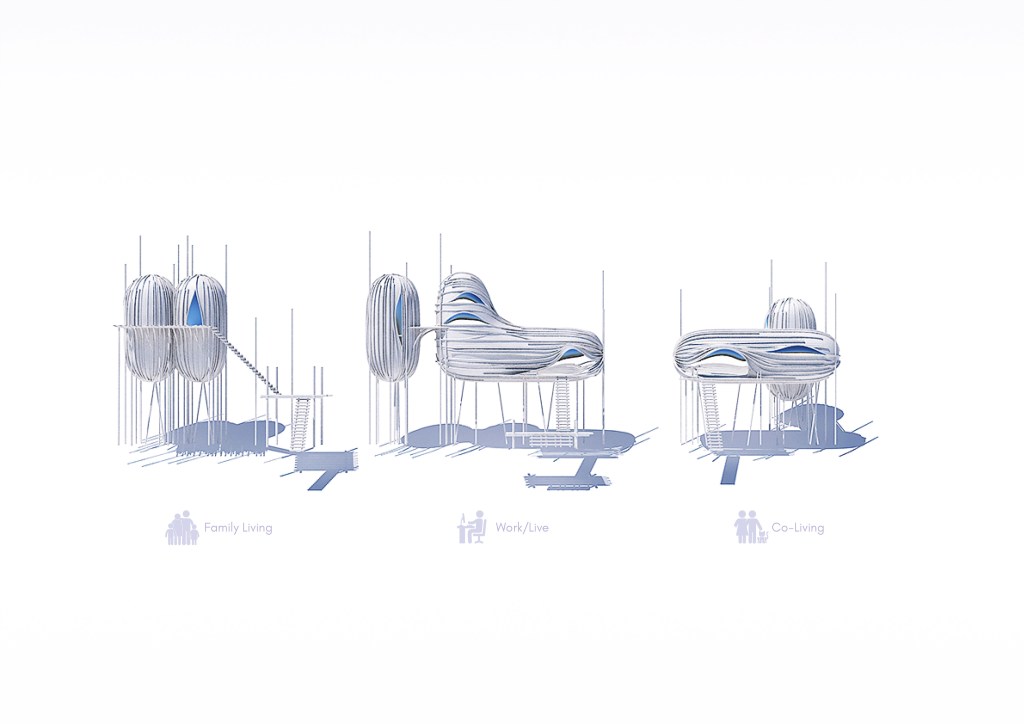 // Ephemeral Lifestyle_The boundaries in the future will be even smaller than today enabled by technology, the residents shall live in shared communities and will be able to move from one place to another without having a large ecological footprint